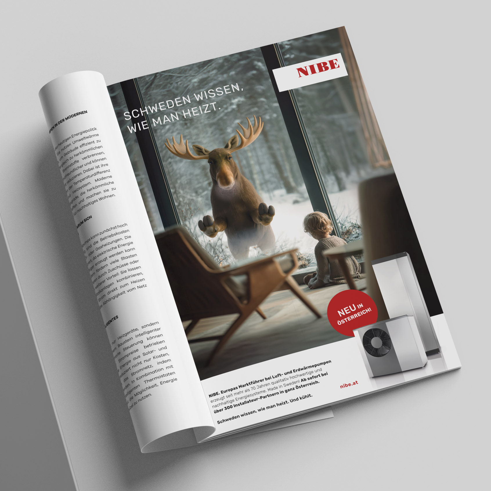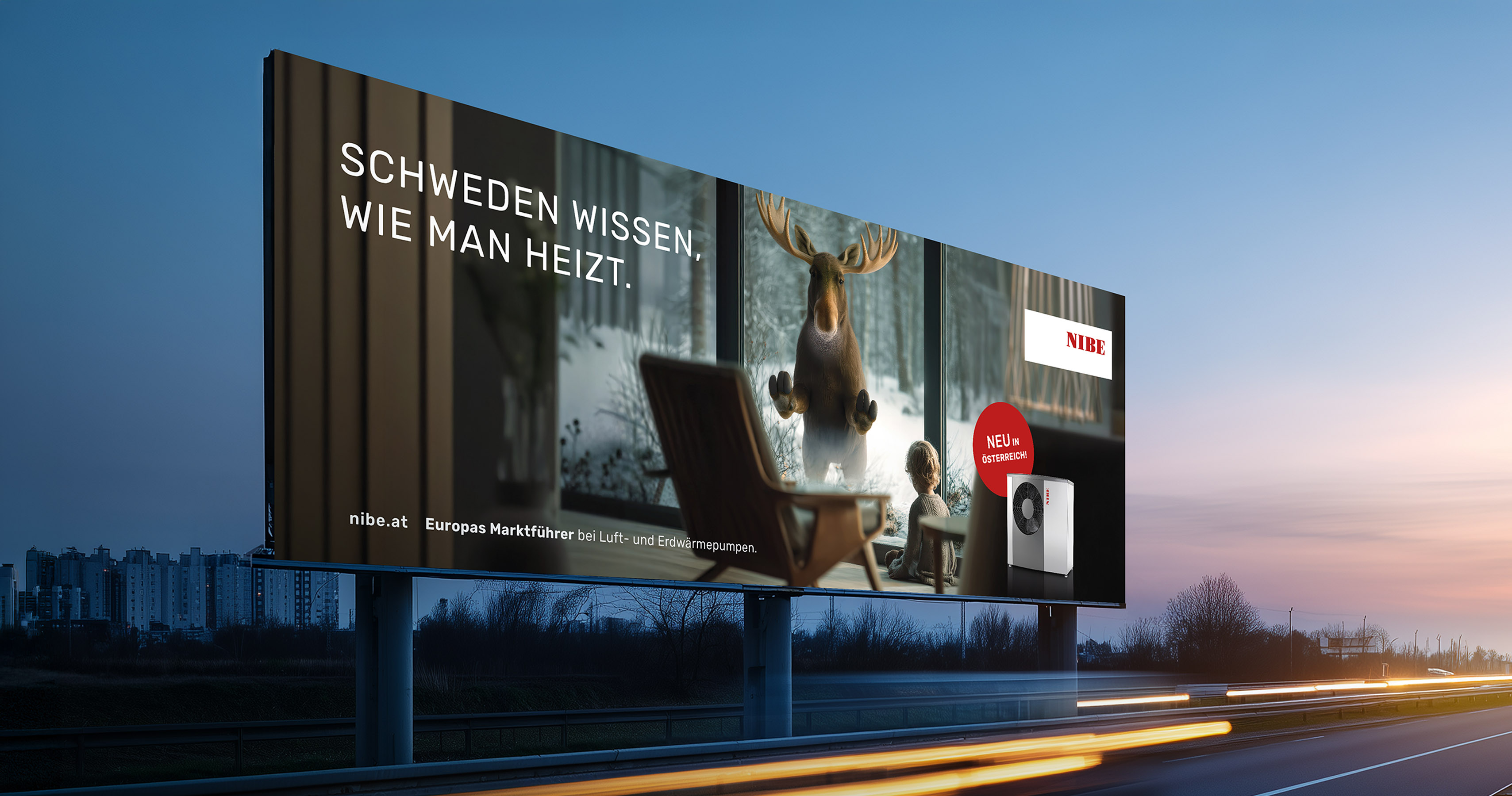 NIBE, einer der größten Hersteller von Wärmepumpen in Europa, ist nun auch in Österreich angekommen. Mit einer aufmerksamkeitsstarken Kampagne, die an die Popularität von Medienstar Emil dem Elch anknüpft, sind die Schweden diesmal gekommen, um zu bleiben. Neben großformatigen Werbeplakaten, Inseraten und Messeständen setzten die Marken-Architekten auch Hörfunkspots, und animierte Video-Banner für Social Media um.